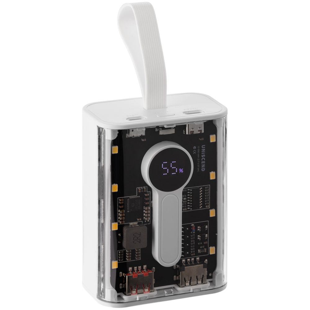 Необычный дизайн коллекции Uniscend Trellis выгодно выделяет новую серию устройств из прозаичного ряда внешних аккумуляторов. Они не поддерживают беспроводную зарядку, зато точно привлекают внимание: под прозрачной панелью хорошо видны электронная начинка и цифровой индикатор оставшегося в аккумуляторе заряда, а мягкая подсветка светодиодами теплого оттенка логичным образом дополняет технологичный внешний вид.Еще одна особенность аккумуляторов Trellis — совершенно автономная конструкция: встроенные кабели позволяют заряжать как самые разные электронные устройства, так и сам аккумулятор.Коллекция Trellis особенно хорошо впишется в контекст коммуникации, если важно обратить внимание на прозрачность и открытость бизнеса.Литий-полимерный аккумуляторЕмкость: 10000 мАч Функция быстрой зарядки Quick ChargeКоличество циклов заряда-разряда: не менее 400Подсветка, включаемая двойным кликом по кнопкеВходные параметры:– Type-C: 5 В, 2 A; 9 В, 2 A/12 В, 1,5 A; Micro USB, USB-A (кабель): 5B, 2АВыходные параметры:– Выход USB-A QC (оранжевый): 5 В, 3 A; 9 В, 2 A/12 В, 1,5 A, USB-A (черный), Type-C, Lightning (кабели): 5В, 2АВремя зарядки: до 3 часов при использовании зарядного устройства с разъемом Type-C и поддержкой функции QC 3.0Встроенные кабели аккумулятора могут не работать с некоторыми iOS-устройствами Apple (iPhone 15Pro/16/17). Претензии по совместимости не принимаютсяТочность показаний индикатора ± 7%