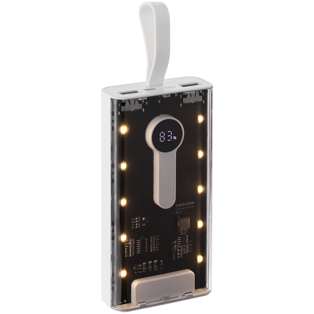 Необычный дизайн коллекции Uniscend Trellis выгодно выделяет новую серию устройств из прозаичного ряда внешних аккумуляторов. Они не поддерживают беспроводную зарядку, зато точно привлекают внимание: под прозрачной панелью хорошо видны электронная начинка и цифровой индикатор оставшегося в аккумуляторе заряда, а мягкая светодиодная подсветка теплого оттенка дополняет технологичный внешний вид.Еще одна особенность аккумуляторов Trellis — совершенно автономная конструкция: встроенные кабели позволяют заряжать как самые разные электронные устройства, так и сам аккумулятор.Коллекция Trellis особенно хорошо впишется в контекст коммуникации, если важно обратить внимание на прозрачность и открытость бизнеса.Литий-полимерный аккумуляторЕмкость: 10 000 мАчКоличество циклов заряда-разряда: не менее 400Подсветка, включаемая двойным кликом по кнопкеВходные параметры:– Type-C (на корпусе), USB-A (кабель): 5 В, 2 AВыходные параметры:– USB-A (гнездо на корпусе), Type-C, Lightning, Micro USB (кабели): 5 В, 2 A (до 3 А суммарно при зарядке двух устройств) Время заряда: от 6 до 10 часов (зависит от параметров зарядного устройства)Встроенные кабели аккумулятора могут не работать с некоторыми iOS-устройствами Apple, например, iPhone 15Pro/16/17Точность показаний индикатора ± 7%