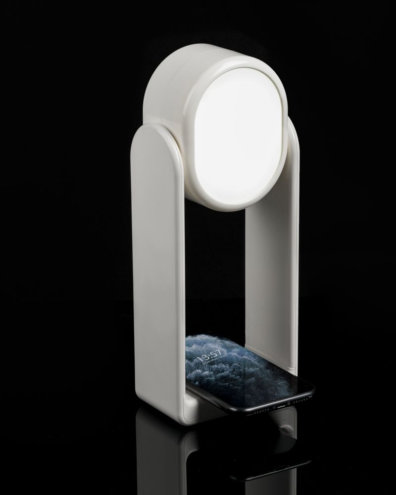 Настольная лампа с зеркалом и беспроводной зарядкой Tyro — это многофункциональное устройство: это и станция для беспроводной зарядки, и настольная лампа, и компактное зеркало.Совместима со всеми мобильными устройствами, поддерживающими технологию беспроводной зарядки Qi. Зарядка начнется автоматически при размещении смартфона на индукционной площадке.Лампа имеет три режима яркости, которые настраиваются в зависимости от индивидуальных потребностей. С обратной стороны лампы расположено зеркало, которое поможет в любой момент убедиться, что вы на свете всех милее. Беспроводная зарядка устройствВход: 5 В, 2 AВыход беспроводной зарядки: 5 В,1 AТри уровня регулируемой яркости лампыВстроенное зеркалоРаботает при питании от сетиАдаптер питания и кабель в комплектеПоставляется в индивидуальной упаковке.Внимание! Не все модели смартфонов поддерживают функцию беспроводной зарядки.